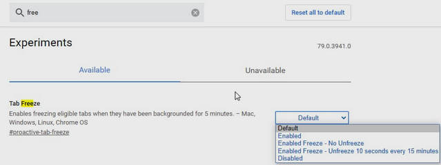 وتعمل الميزة الجديدة Proactive Tab Freeze and Discard بطريقة مماثلة ، ولكنها تمنحك مزيدًا من التحكم في وقت تعليق علامات تبويب الخلفية والوقت الذي تستغرقه ، ويتوفر تجميد علامات التبويب للاختبار في متصفح المطورين كروم كنارى الاصدار Chrome 79 Canary ، وقريبا بعد الانتهاء من تجربة هذه الميزة الجديدة واختبارها سوف تطلق بشكل رسمى لجميع المستخدمين لمتصفح جوجل كروم .