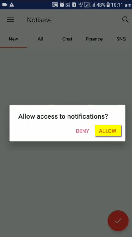 الخطوة 3. في الخطوة التالية ، سيطلب منك التطبيق منح الوصول إلى الإشعار notification ، تأكد من النقر على “السماح” Allow .